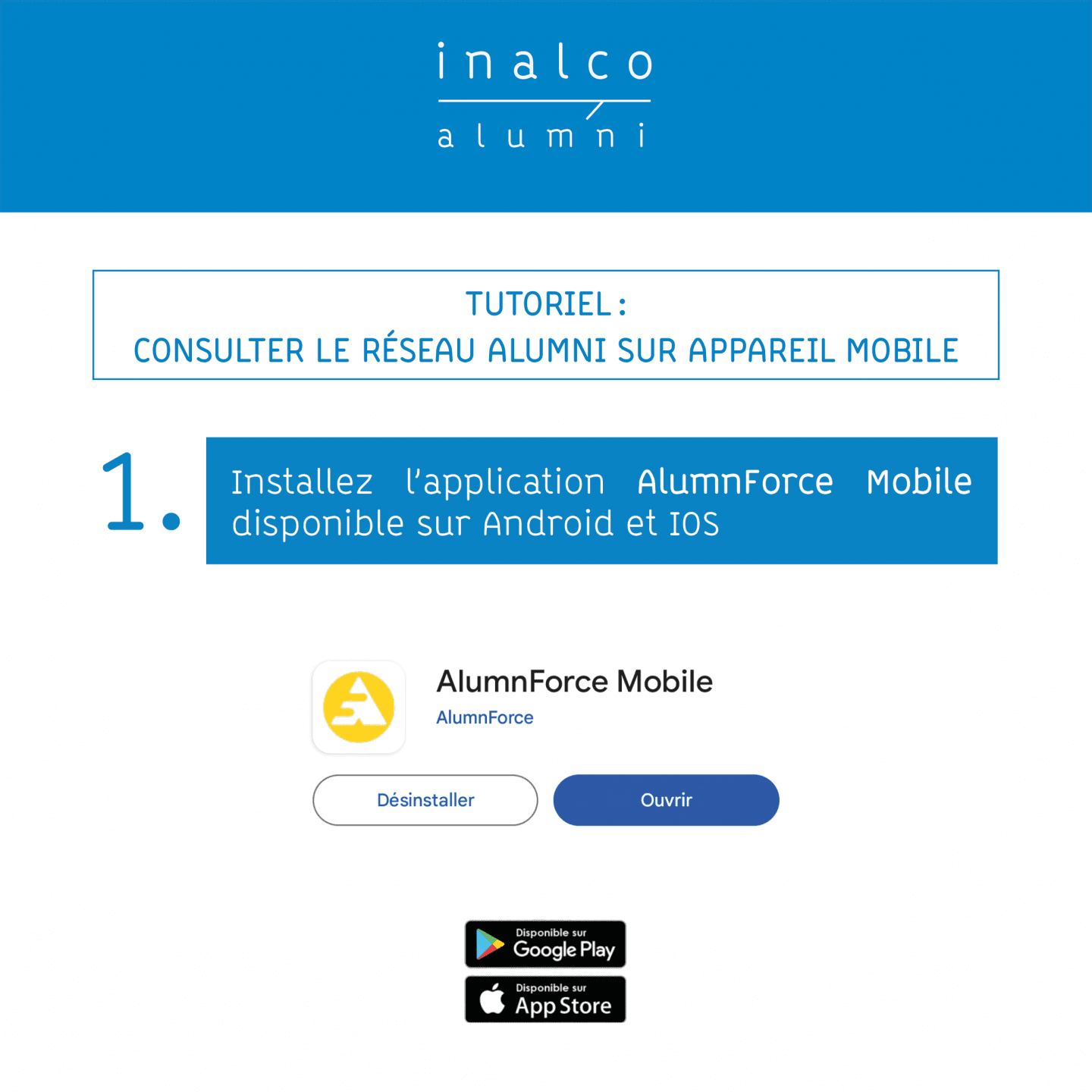 Chers alumni,Pour rendre vos connexions au réseau Inalco Alumni instantanées, il est possible de vous connecter sur application mobile !Voici les étapes à suivre – également illustrées ci-dessous dans la galerie d'images et au format PDF :1. Installez l'application mobile AlumnForce, disponible sur IOS et Android.2. Sélectionnez le réseau Alumni Inalco.3. Connectez-vous.4. Profitez d'une meilleure accessibilité aux fonctionnalités et contenus de la plateforme !L'équipe des alumni