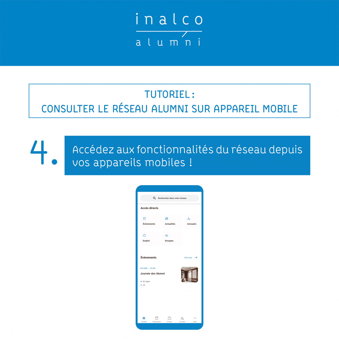 Tutoriel Inalco Alumni : Consulter la plateforme sur mobile